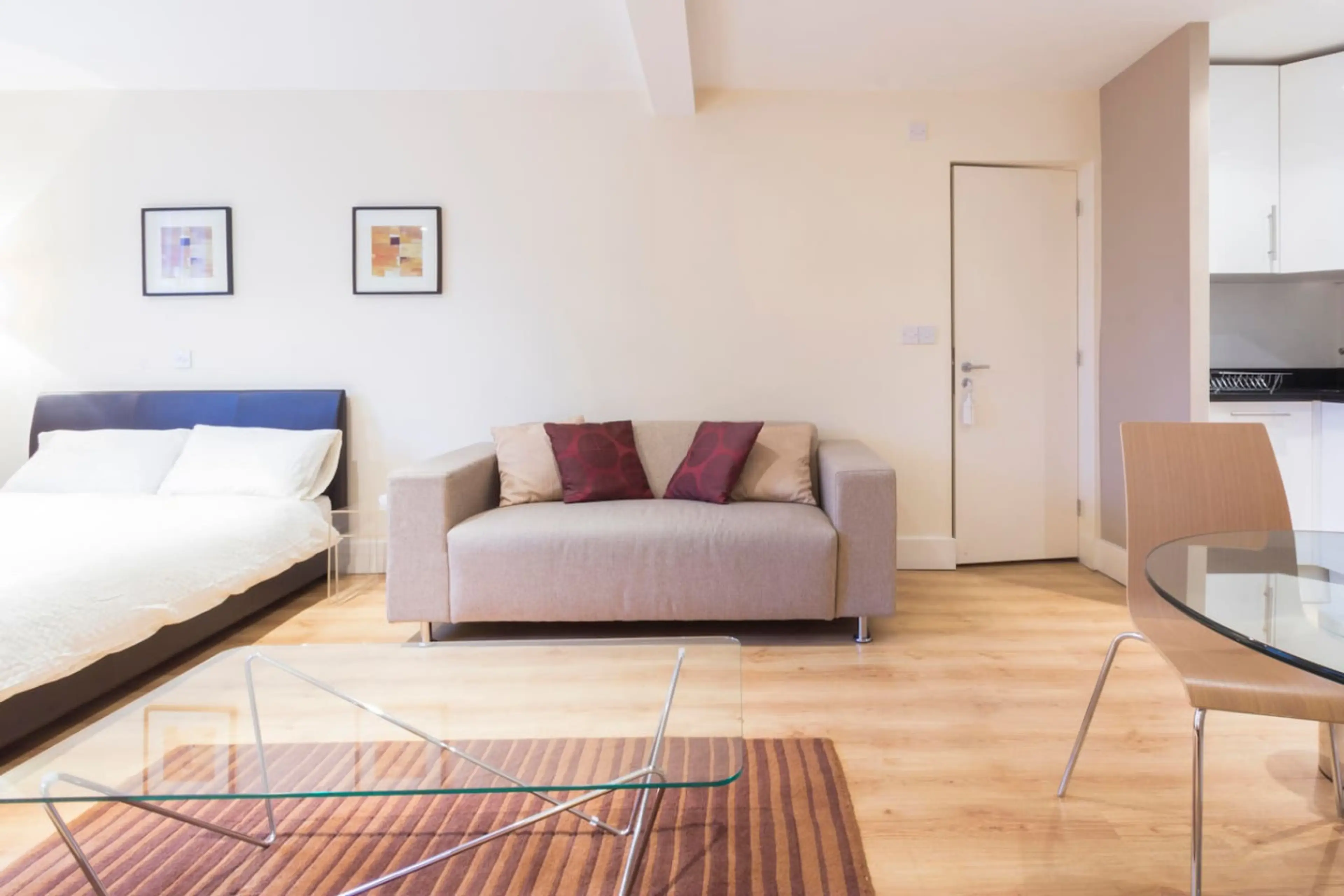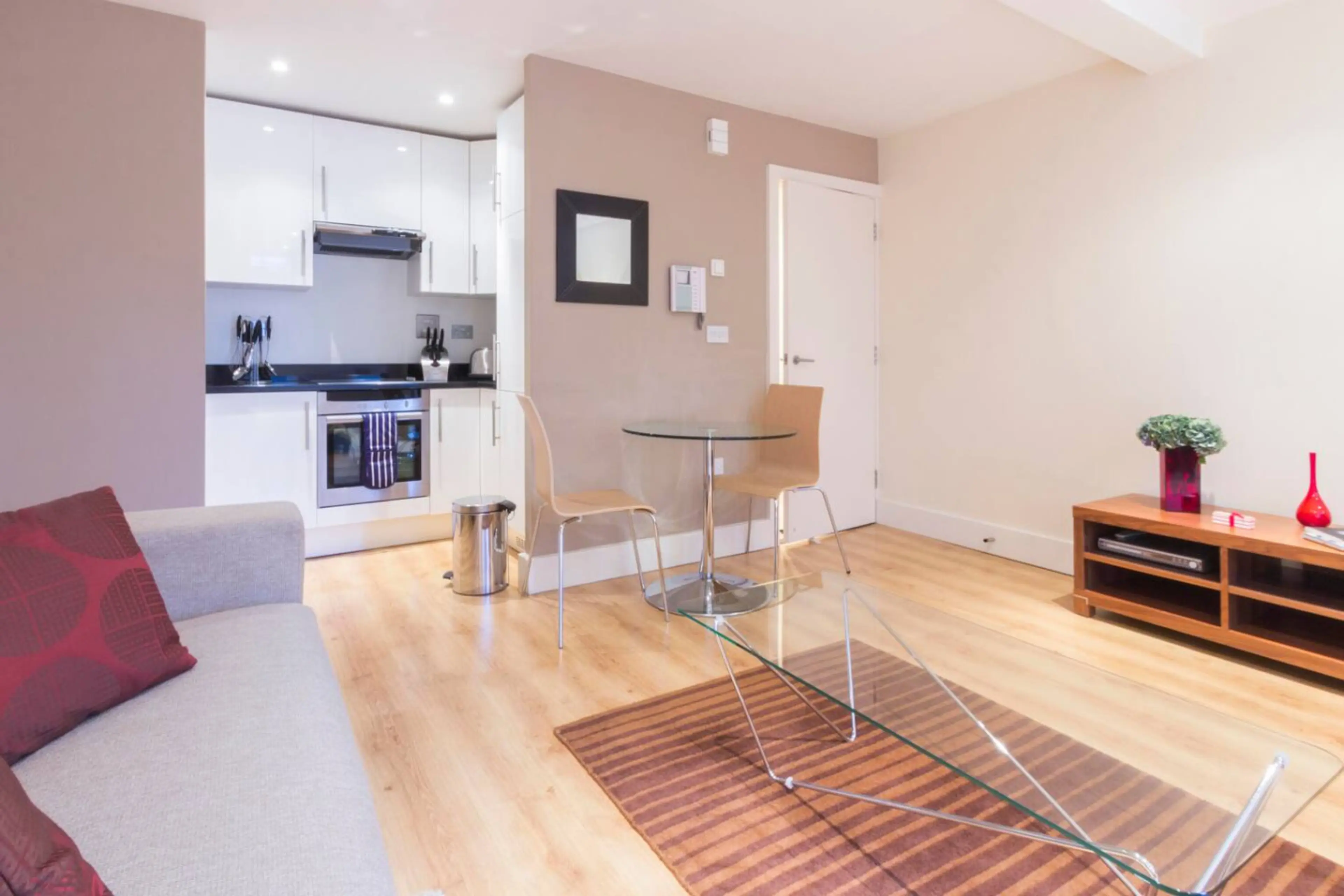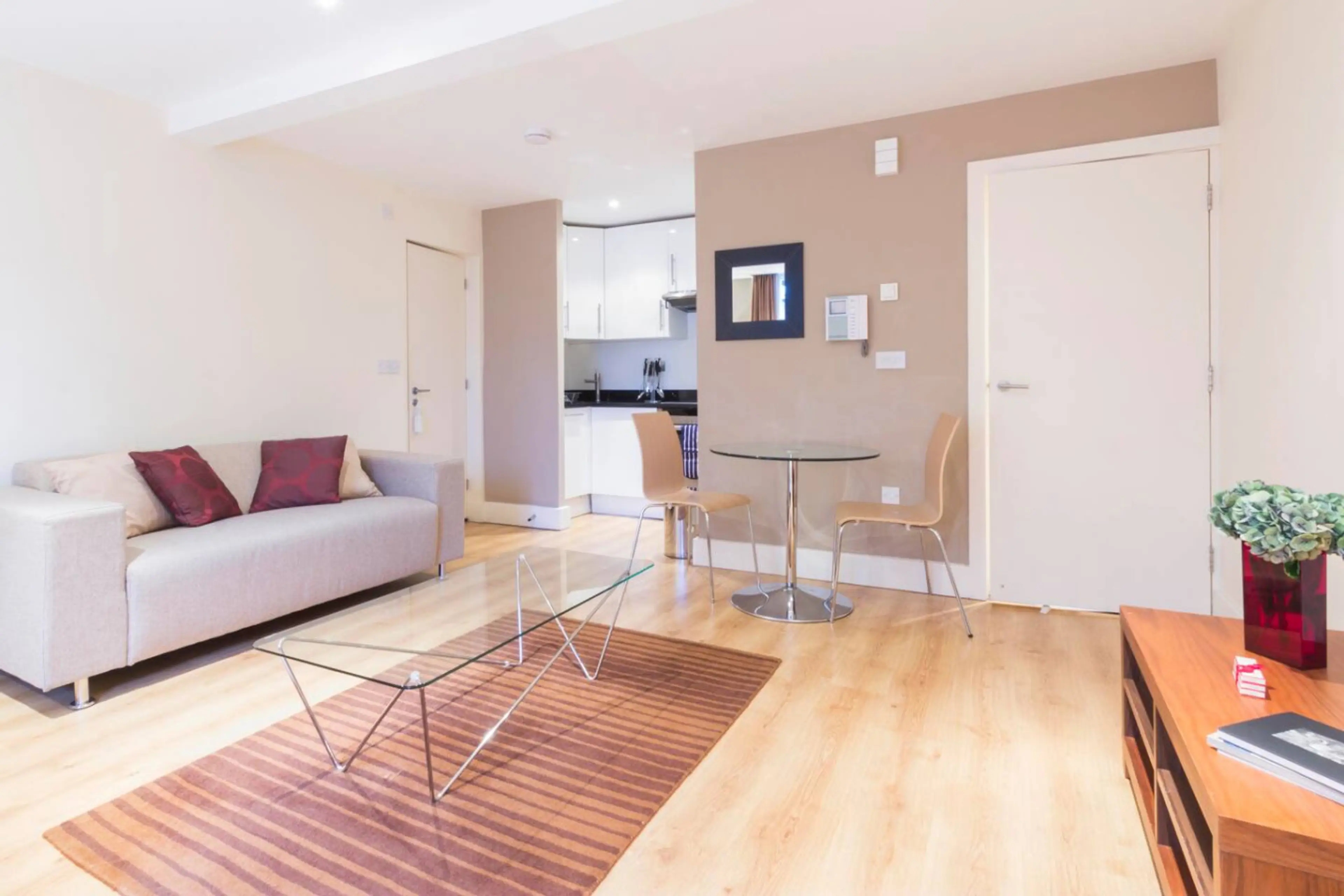 Enjoy a calm and comfortable stay in this modern first-floor studio, set within a secure building with lift access in the heart of Clerkenwell, just moments from Farringdon Station. The flat features a luxury Eve double mattress, widescreen TV, fast WiFi, washing machine, and dishwasher. A desk and ...